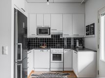 - Keittiön varusteet: Jääkaappipakastin, liesi, liesituuletin ja astianpesukone. Liesi: Induktioliesi.