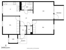 - Pinta-alan peruste: Isännöitsijäntodistuksen mukainen ja yhtiöjärjestyksen mukainen. Ei tarkistusmitattu. Pinta-alat saattavat tämän ikäisissä kohteissa (yhtiö rekisteröity ennen 01.01.1992) poiketa olennaisestikin asuinrakennusten nykyisten mittaustapojen ja standardien (SFS 5139) mukaan laskettavasta asuintilojen pinta-alasta. Pinta-ala voi siis olla edellä mainittua pienempi tai suurempi.