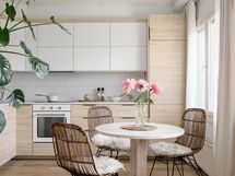 - Liesi: induktio, erillisuuni. Työtasot: laminaatti. Kylmäsäilytys: jääkaappi/pakastin. Varustus: liesituuletin, astianpesukone.