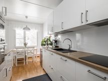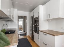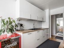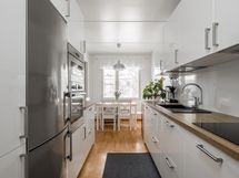 - Keittiö on uusittu kodinkoneineen 2020. Keittiön varusteisiin kuuluu kaapistot, jääkaappi, pakastin, astianpesukone, sähköuuni induktioliesitasolla ja liesituuletin.