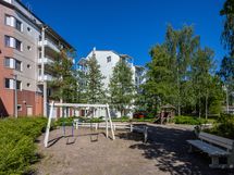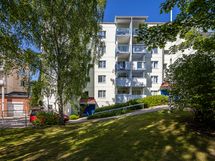 - Läpitalon huoneisto. Parveke avautuu sisäpihan suuntaan.