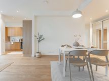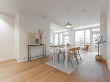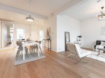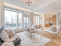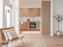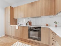 - Integroidut Mielen kodinkoneet: jääkaappi/pakastin, astianpesukone, kalusteuuni, induktiotaso, liesituuletin, mikroaaltouuni, kvartsitaso (Ylämaan graniitti / Calacatta gold), kaapistot (tammiviilu), kiinteä led-valaistus. Katso tarkemmat erittelyt Asuntojen pintamateriaalit ja kodinkoneet -liitteestä