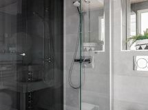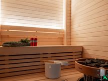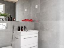 - Kylpyhuoneessa Laattapisteen laatat ja kalusteet, peilikaappi, allaslaatikosto, allas, Damixan hana sekä sadesuihku ja kiinteä suihkuseinä, Idon WC-istuin, sähkösauna, kiuas Harvia. Erillisessä wc:ssä Laattapisteen laatat ja kalusteet, peili, allaslaatikosto, allas, Damixan hana, Idon WC-istuin, kylpyhuonekaapisto ja pesukoneliitäntä