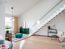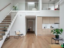 - Puustellin keittiö tammiviilua, vaaleat kvartsitasot, välitilalasi, Damixan keittiöhana kromi, Lapetek rosteriallas, AEG:n kodinkoneet: mikroaaltouuni, kalusteuuni, astianpesukone, jääkaappipakastin, induktioliesitaso, liesikupu suodattimella