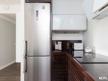 - Keittiö remontoitu 2013. Alakaapit ja saareke Domus, yläkaapit Ikea. Varustus: jääkaappi/pakastin, astianpesukone (integroitu), liesituuletin / suodatin (aktiivihiili). Liesi: induktio, erillisuuni (myös mikrotoiminto). Lattia: laminaatti. Seinät: maalattu.