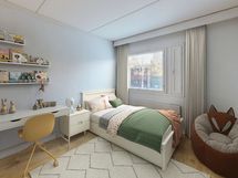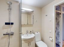 - Varustus: suihkuseinä, pesukoneliitäntä, lattialämmitys, wc-istuin, suihku, peilikaappi.