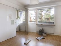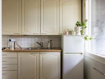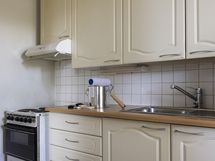 - Varustus: jääkaappi (pakastinlokerolla), sähköliesi, liesituuletin, välitila laatta, kaapistot.