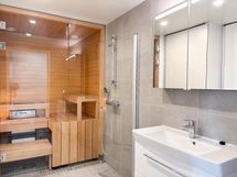 - Suihku, allaskaappi, peilikaappi sekä, pidesuihku, pesukoneliitäntä seinä wc-istuin. Kaikissa kylpyhuoneissa ja erillis-wc:ssä on sähköinen mukavuuslattialämmitys, joka on kytketty asunnon sähköstä.