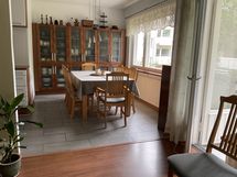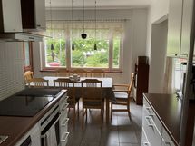 - Induktioliesi, erillisuuni, liesituuletin, jää-pakastinkaappi. Tilaa isolle ruokapöydälle.