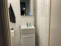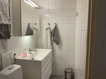 - Ikkunallinen kylpyhuone: lattialämmitys, pyyhepatteri, lämpöpatteri, suihku, pesukoneliitäntä. Iso WC: pyyhepatteri, allaslaatikosto, peilikaappi, bideesuihku ja WC-istuin. Pieni WC: allaskaappi, peili, hylly, bideesuihku ja WC-istuin.
