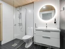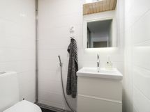 - Pesukoneliitäntä, Tilaa pesukoneelle, Käsisuihku, Kaapisto, Allas, WC-istuin, Peilikaappi