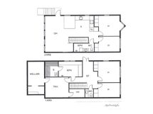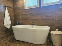 - Pesutilojen kuvaus: Alakerran kylpyhuoneen on edellinen omistaja uusinut vuonna 2013. Kokonaan laatoitettu, suihku, amme ja pesukoneliitäntä.
