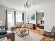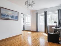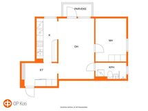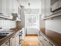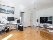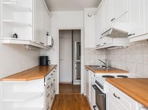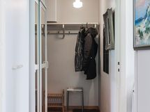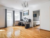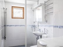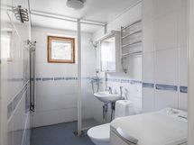 - Kylpyhuone, suihku, suihkuseinä, peilikaappi, pesukoneliitäntä, kiinteät valaisimet. laminaattitasot