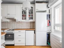 - Jääkaappipakastin 2023, pakastekaappi, lattialiesi, liesituuletin, astianpesukone, kaapistot Parma Keittiöt, kiinteät valaisimet.