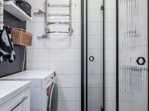 - Varustus: suihkuseinä, pesukoneliitäntä, wc-istuin, suihku, peilikaappi, asennettuja erikoisvarusteita.