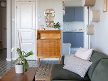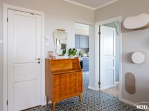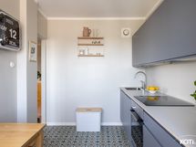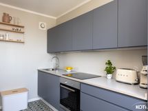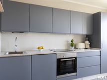 - Keittiön varusteet: Jääkaappipakastin (2022), uuni (2016), liesi (Induktio 2024), astianpesukone (2016) ja liesituuletin. Puusepän valmistamat kaapistot 2016, ovet ruiskumaalattu ammattilaisen toimesta 2022, taso uusittu 2022 (koivuvaneria, suomalainen HELNO).