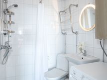 - Pesutilojen varusteet: WC-istuin, suihku, pesukoneliitäntä, lattialämmitys, peili, pesuallas, allaskaappi ja kuivauspatteri, seinäkaappi. Pesutilojen kuvaus: Kylpyhuone remontoitu putkiremontin yhteydessä taloyhtiön toimesta 2006.