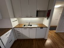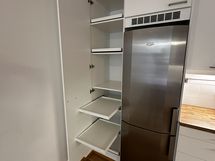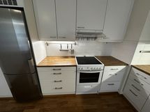 - Tilaa isolle ruokapöydälle, Laminaattitasot, Astianpesukone, Keraaminen liesi, Jää-pakastinkaappi. Paljon laatikoita ja vetohyllyjä. Välitila kaakeloitu.