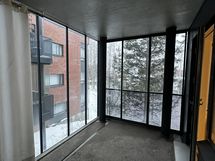 - Parvekkeelta ja olohuoneesta näkymä kohti Latokartanon metsäaluetta