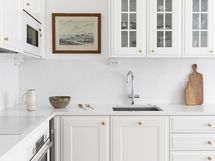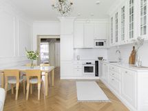 Korkealaatuinen, talon tyyliin päivitetty avokeittiö on varusteltu modernein ja ylellisin ominaisuuksin. Sama, viimeistelty tyyli ja puhuttelevat yksityiskohdat toistuvat koko asunnossa. Huoneisto on poikkeuksellisen pettämättömällä tyylitajulla viimeistelty ja monien vuosien asumisen jälkeenkin, sen kunto on uutta vastaava.