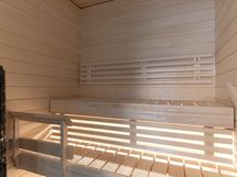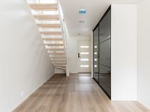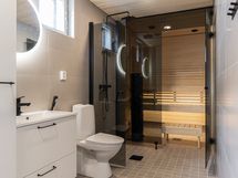 Olohuoneessa ja makuuhuoneissa on vinyylilattiat, jotka ovat sekä tyylikkäät että helppohoitoiset. Kylpyhuoneessa ja saunassa on laattalattiat, ja sauna on varustettu Harvian sähkökiukaalla. Kylpyhuoneessa on Puustellin kaapit ja vesikiertoinen lattialämmitys, joka tuo lisämukavuutta.