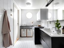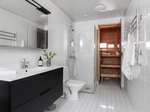 - Pesutilojen varusteet: Suihku, allaskaappi, peilikaappi, wc-istuin, bidee-suihku, pesukoneliitäntä, suihkukaappi ja pesuallas. Erillisten WC:n lukumäärä: 1. Erillisen WC:n varusteet: WC-istuin, bidee-suihku, pesuallas ja peilikaappi.