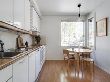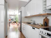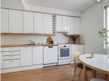 - Keittiön varusteet: Jääkaappipakastin (2 kpl), liesituuletin, astianpesukone ja liesi. Liesi: Induktioliesi. Työtason materiaali: Laminaatti.