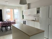 - Tilaa isolle ruokapöydälle, Laminaattitasot, Puutasot, Astianpesukone, Keraaminen liesi, Liesituuletin, Jääkaappi, Pakastin
