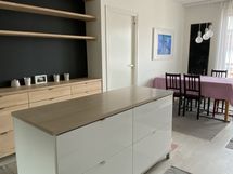 - Hyllykön ja laatikoston mittatilaustyö avokeittiön seinään 2017.