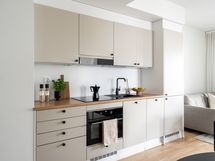Tervetuloa tähän upeaan, kesäkuussa 2024 valmistuneeseen 5. kerroksen kaksioon, joka tarjoaa käytännössä kolmion mukavuudet. Asunnon lisätilana toimii monikäyttöinen alkovi/työtila, joka soveltuu loistavasti niin etätyöpisteeksi kuin pieneksi makuutilaksi.