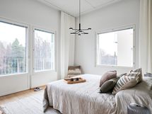 - lattiamateriaalina lämmin 3-säleinen tammiparketti, jonka alla lattialämmitys. Pattereita ei lattialämmityksen ansiosta ole näkyvissä.