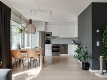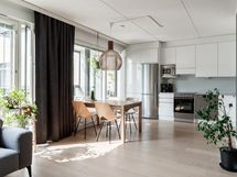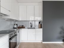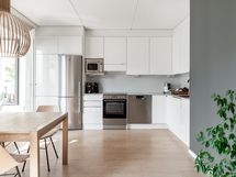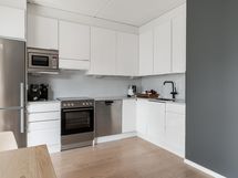 - Jääkaappipakastin, keraaminen liesi, liesituuletin, mikroaaltouuni, astianpesukone, kaapistot.