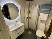 - Suihku, Suihkukaappi, Allaskaappi, Peilikaappi, Pesukone, Sauna
