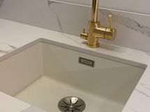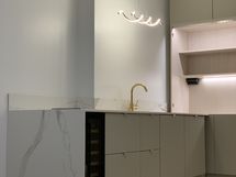 - Tilaa isolle ruokapöydälle, Paljon kaappitilaa, Paljon työskentelytilaa, Kivitasot, Lasikaapit, Suuri tiskipöytä, Integroidut koneet, Induktioliesi, Jääkaappi, Pakastin, Integroitu kuivaava pyykinpesukone