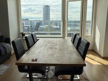 - Tällä hetkellä 2 makuuhuoneella ja läpitalon avaralla olohuoneella. Mahdollista lisätä yksi makuuhuone helposti. Lisäksi keittiö + kylpyhuone (mahdollista remontoida sauna) + 30m kattoterassi.