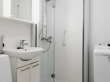 - Allaskaapisto, peilikaappi, suihkuseinät, suihku, pesukoneliitäntä, vesikiertoinen pyyhepatteri.