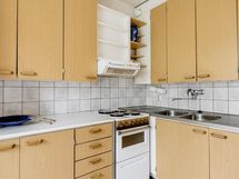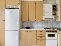 - Jääkaappipakastin. Lattialieden, ja liesituulettimen toimivuudesta ei takeita. Puunväriset kaapistot. Keittiö kokonaisuudessaan remontoitavassa kunnossa. Putkisaneerauksen yhteydessä tilaan tulee uudet sähköpistokkeet.