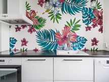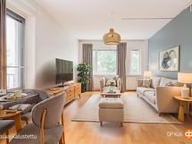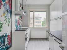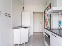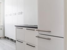 - Jääkaappipakastin, induktioliesi, liesituuletin, astianpesukone, kaapistot, kiinteät valaisimet. Roikkuvat valaisimet 3 kpl , Laminaattitasot