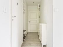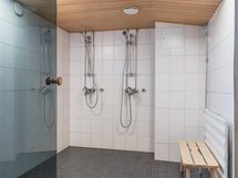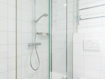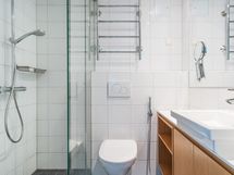 - Kylpyhuone, suihku, suihkukaappi, peilit, allaskaappi, pesukoneliitäntä, lattialämmitys, kiinteät valaisimet. Pyyhepatteri