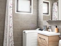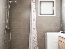- Pesutilojen varusteet: WC-istuin, suihku, pesukoneliitäntä, lattialämmitys, bidee-suihku, peilikaappi ja allaskaappi. Pesutilojen kuvaus: Kylpyhuoneremontti tehty 2024.