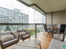 - Puustellin keittiö: jääkaappi/pakastin, erillisuuni, induktioliesitaso, liesituuletin, astianpesukone, mikroaaltouuni, kaapistot. Integroidut Siemens-kodinkoneet.