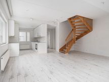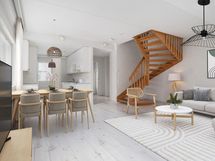 Kaksitasoinen rivitalon päätyneliö. Alakerrassa keittiö, jonka yhteydessä ruokailutila ja olohuone ja pääsy omalle terassipihalle. Pihalla tilava varasto. Alakerrassa on myös erillis-WC. Yläkerrassa pääset nauttimaan omasta saunasta ja vilvoittelemaan saunan jälkeen tilavalle parvekkeelle. Kaikki kolme makuuhuonetta sijaitsevat yläkerrassa. Tässä kiva perheasunto rauhaisella alueella. Autopaikka on varattavissa.