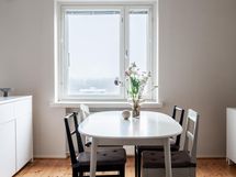 - läpitalon asunto, keittiön ja olohuoneen ikkunat länteen, makuuhuone idän suuntaan.