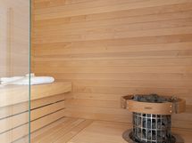 Lattia: Pesutiloissa: laatta. Saunassa: laatta. Seinät: Pesutiloissa: kaakeli. Saunassa: puu.