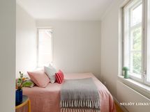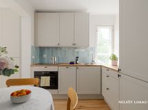 Asunnossa on lämminhenkinen tunnelma: kauniit parkettilattiat, vaaleat maalatut pinnat ja käytännöllinen pohjaratkaisu luovat viihtyisän kokonaisuuden. Keittiö ilahduttaa puutasoisilla työtasoillaan ja integroiduilla kodinkoneillaan. Kylpyhuone on kauttaaltaan laatoitettu ja varustettu pesukoneliitännällä. Huoneiston remontit on toteutettu laadukkaasti.