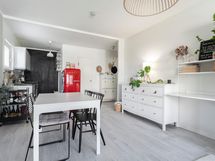 - Jääkaappi Smeg (sis. papastelokero), astianpesukone (uusittu 2025), keraaminen liesi, liesituuletin. Keittiön laadukas kaapisto n. vuodelta 2015.