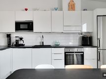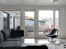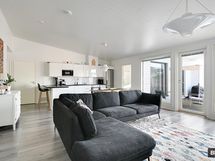 Olohuone ja avokeittiö muodostavat valoisan ja tilavan oleskelutilan. Huipputyylikäs keittiö jakaa ruoanlaittopuitteet seinustan lisäksi niemekkeelle ja laadukkaat kodinkoneet vastaavat vaativankin kotikokin tarpeisiin. Makuuhuoneet ovat mukavan tilavia ja asunto sopii niin lapsiperheelle, kuin useammalle etätyöläisellekin. Säilytystilaa löydät kaapistojen lisäksi hyvänkokoisesta vaatehuoneesta sekä ulkovarastosta. Moderni kylpyhuone ihastuttaa laadukkaan tunnelmansa lisäksi lasiseinäisen saunan vaaleilla puupinnoilla. Kokonaisuuden kruunaa kulkuväylään nähden rutkasti korotettu takapiha, jossa nautit kesäpäivistä yksityisesti.