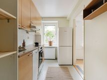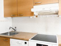 - Keittiön varusteet: Jääkaappipakastin, liesi, liesituuletin, astianpesukone ja kodinkoneet eivät ehkä toimi. Liesi: Valurautaliesi. Työtason materiaali: Laminaatti.
