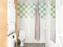 - Pesutilojen varusteet: WC-istuin, suihku, peili, pesuallas ja bidee-suihku.