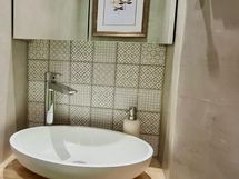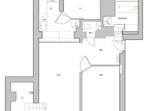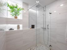 - Suihku, Suihkuseinä, Pesukone, Laattalattia, Laattaseinä, Lattialämmitys, Rättipatteri, Erillinen WC, Peilikaappi, Kuivausrumpu